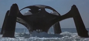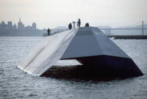 In Tomorrow Never Dies media mogul Elliot Carver (Jonathan Pryce) has a diabolical plan to provoke a world war starting with Britain and China, which his media company can than cover and ultimately profit. The basis of his plan centres around launching stolen British missiles into Chinese territories, then using the power of his media empire to maneuver public opinion electing his partner General Chang (Phillip Chung-Fung Kwok) to lead China. Other than the office buildings of his media companies, Carver has developed a state-of-the-art Stealth Ship to use as his mobile lair. Like Trevelyan’s Stealth Train in GoldenEye (1995), Carver’s Ship is supported by the ultimate in Stealth technological radar-evading and absorbing abilities, special skin coatings and angular surfaces allowing for undetected movement throughout the world’s oceans and waterways. Additionally, the Stealth Ship was heavily fortified and armed including the ability to launch cruise and surface to air missiles surpassing those weapons found on resisting warships and fighter jets. The design of Carver’s ship was heavily based upon the design of the very real Sea Shadow (IX-529), a prototype stealth vessel, which utilized the design and technology developed for the F-117 “Night Hawk” stealth fighter which debuted in 1991’s “Operation Desert Storm”. For the exterior shots of Carver’s ship, a large scale miniature model was created combining the design of the Sea Shadow with the SeaCat Scotland cross-channel ferry. The catamaran-style hybrid model was developed by the movie’s special effects designer John Richardson. Filming of the model was completed in a tank in Rosarita, Mexico which was originally constructed for the filming of James Cameron’s Titanic (1997).